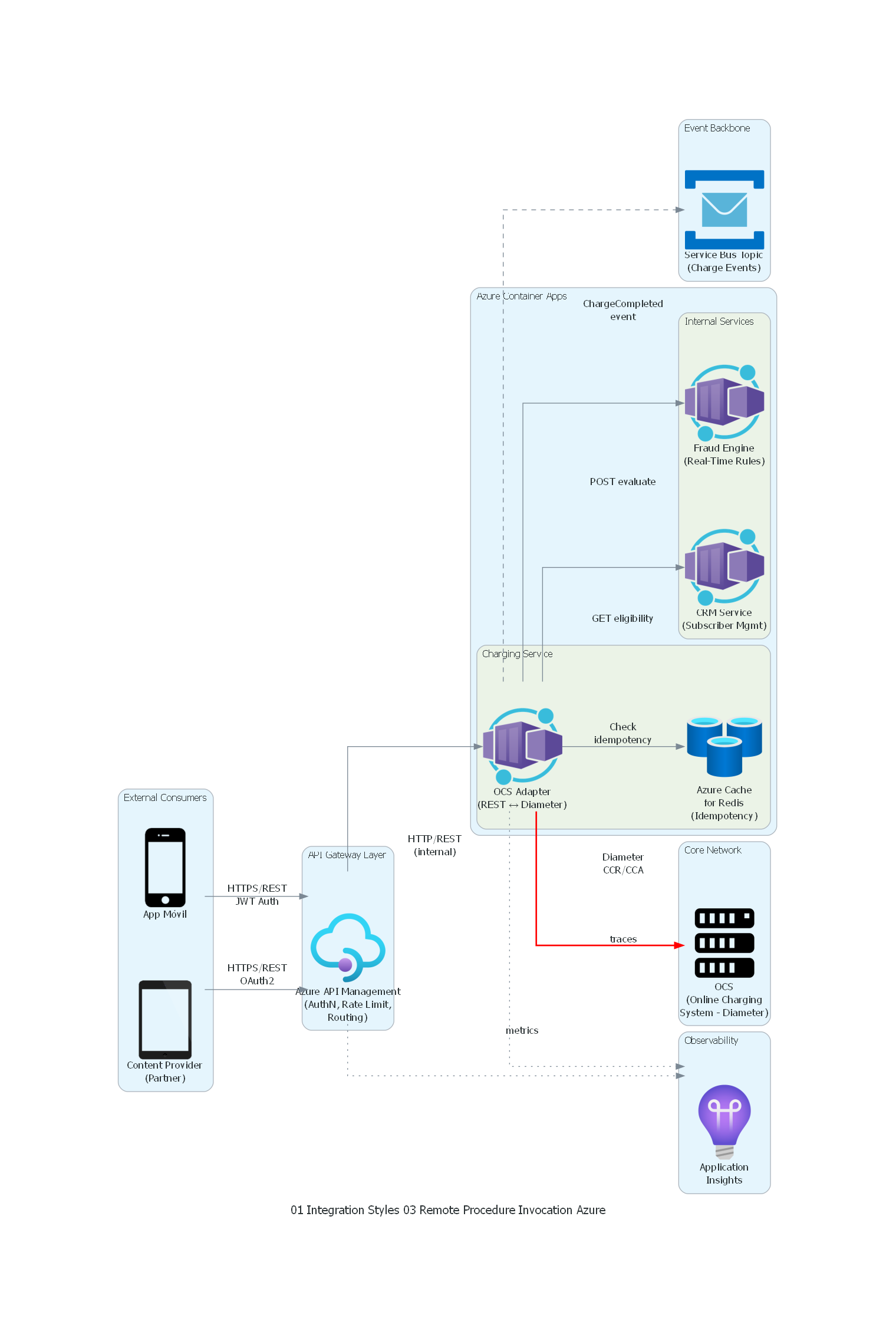 - Observabilidad como habilitador, no como overhead: distributed tracing, métricas RED, health checks y dashboards operacionales no son "nice to have". Son la herramienta fundamental para diagnosticar problemas en un sistema distribuido donde el flujo de una operación cruza múltiples servicios, redes y equipos.
