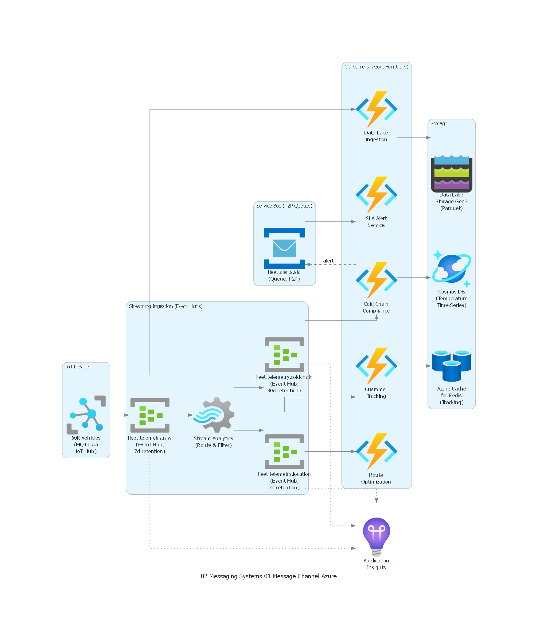Azure Service Bus implementa Message Channel como Topics con Subscriptions que tienen filtros SQL-like. Cada subscription es un canal virtual con su propia semántica de entrega.