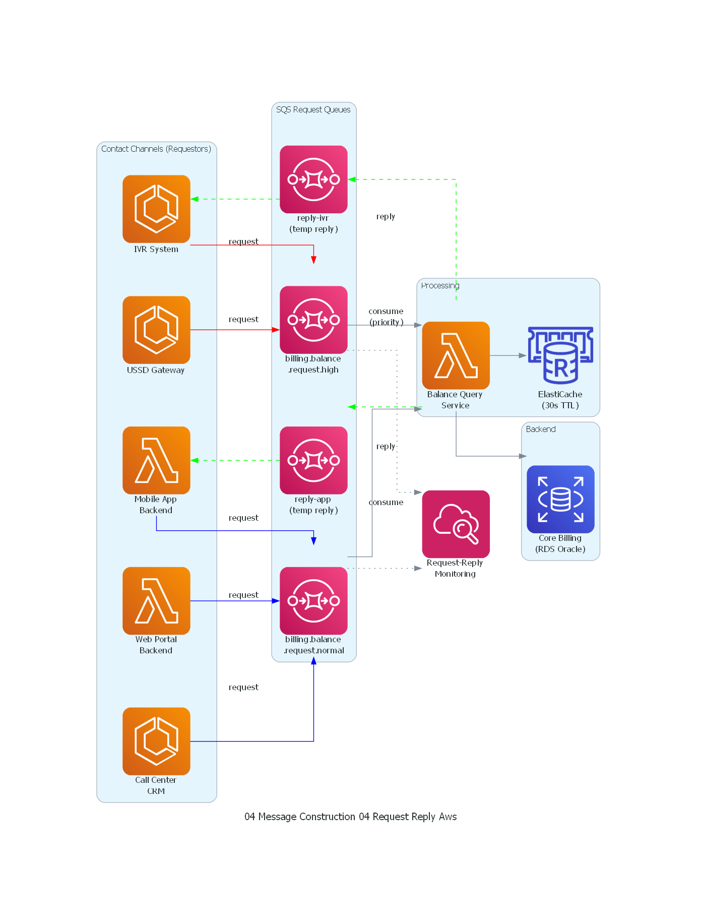 | AWS SQS | Reply queue separada + correlation_id en message attributes |
