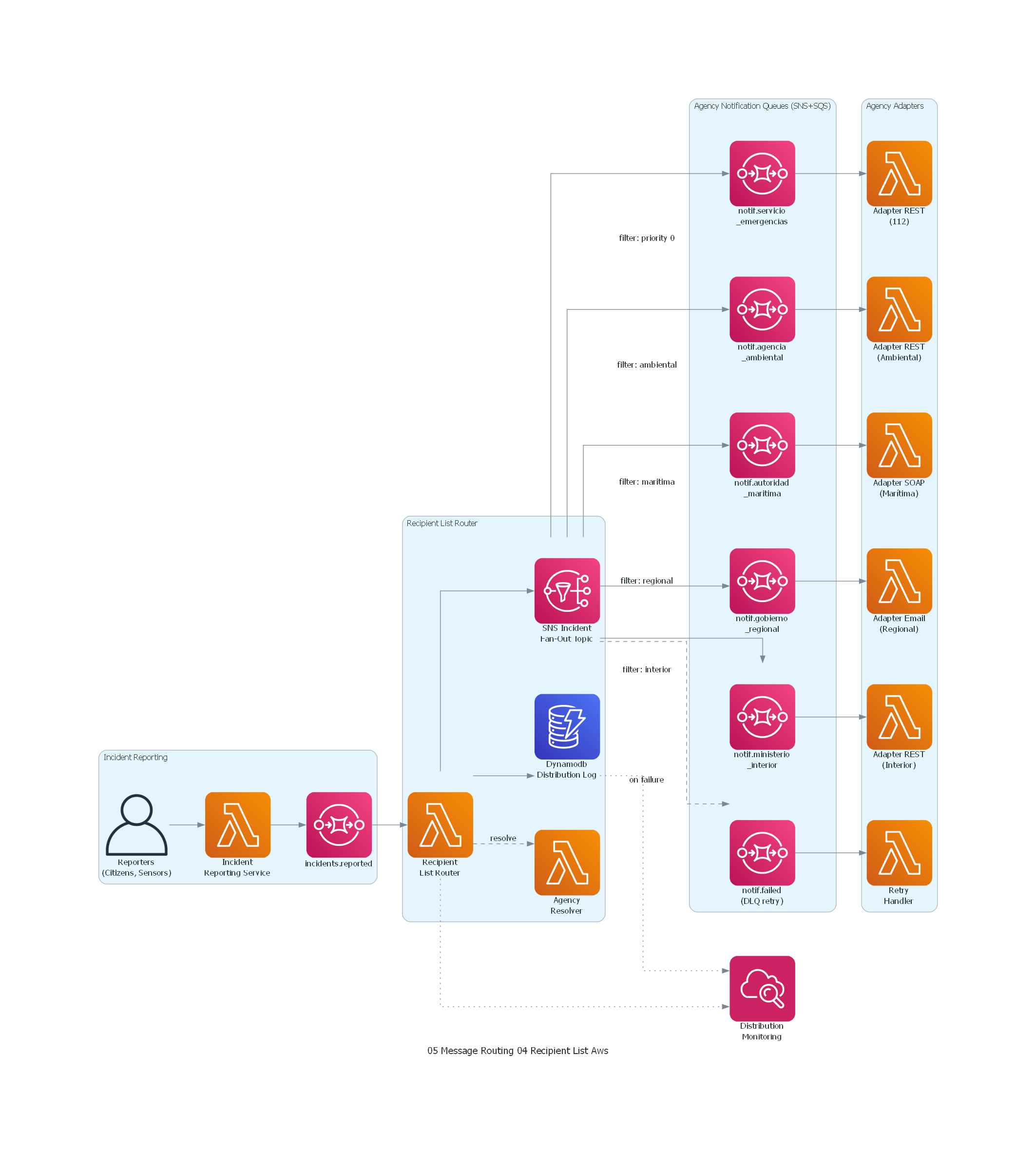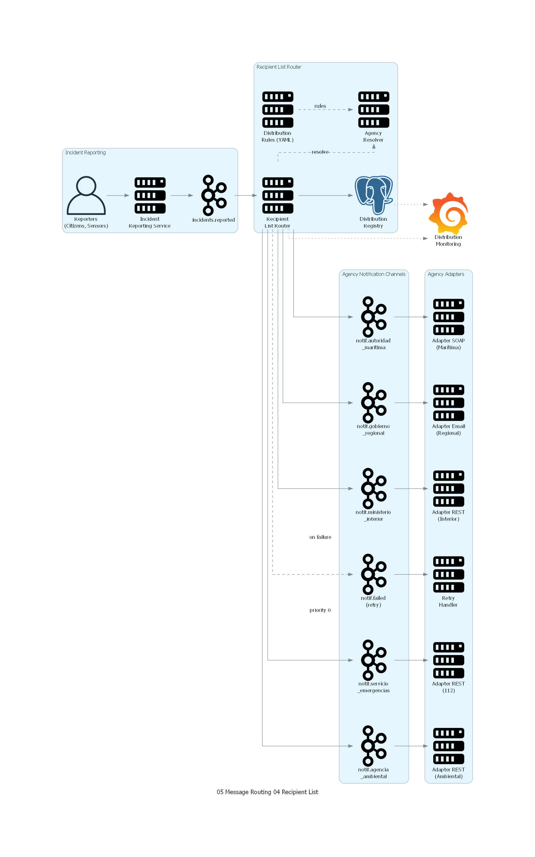 Cuándo evita problemas importantes: una Recipient List bien implementada — con distribución paralela, manejo de fallo parcial, registro de distribución auditable y reglas de selección validadas — evita los problemas más graves: agencias no notificadas de incidentes que les corresponden, distribución inconsistente por fallos parciales no gestionados, y falta de evidencia de compliance en auditorías regulatorias.
