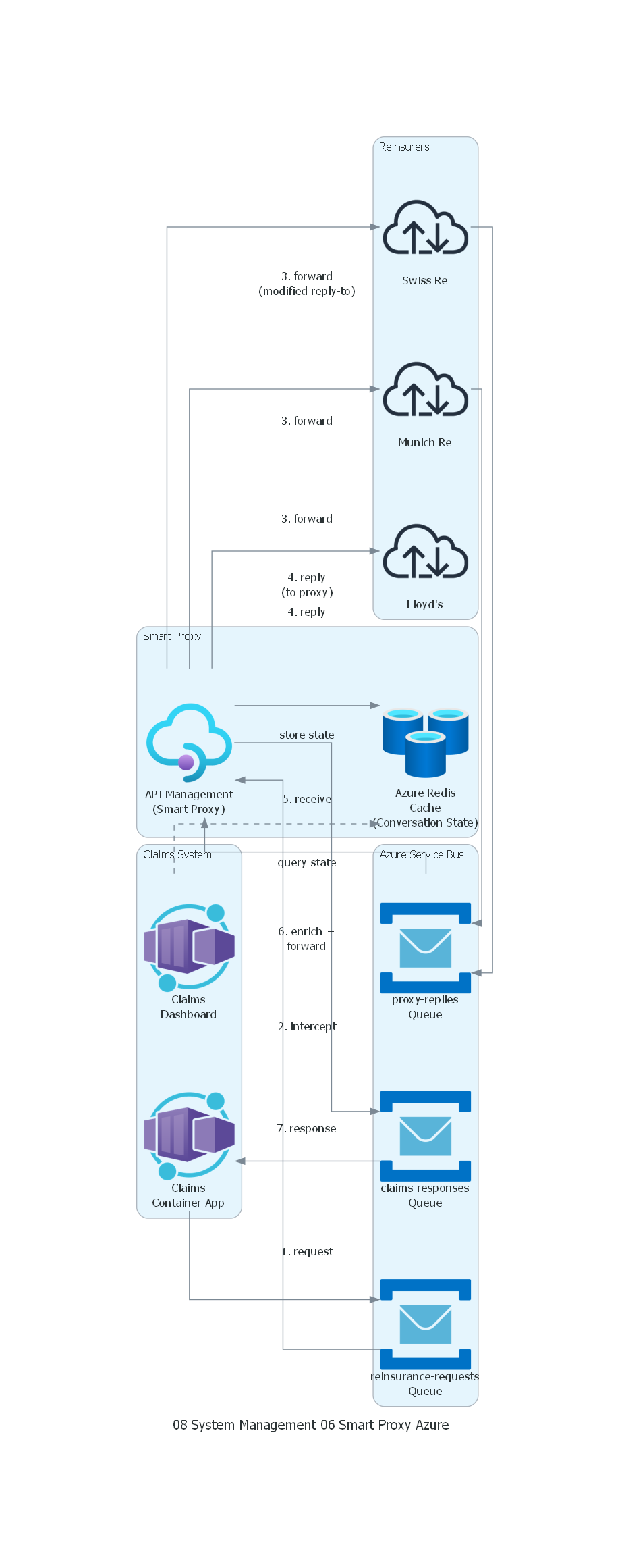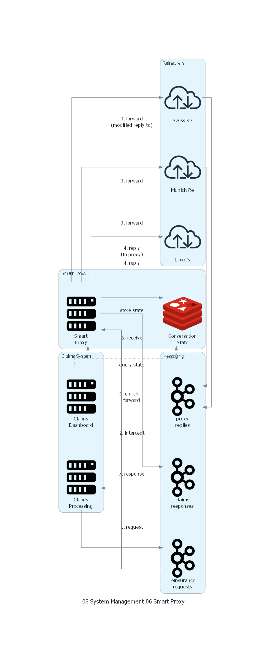 - Si Redis pierde datos, las conversaciones en vuelo se pierden. Los reaseguradores responderán pero el proxy no podrá correlacionar. Implementar un mecanismo de reconciliación.